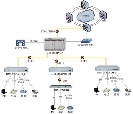 IDM MSAP155-24可以與其他SDH設(shè)備組成星型網(wǎng)絡(luò),將遠(yuǎn)端的業(yè)務(wù)進(jìn)行匯聚,便于對遠(yuǎn)端的業(yè)務(wù)進(jìn)行監(jiān)控,以解決遠(yuǎn)端單位分布分散的問題。