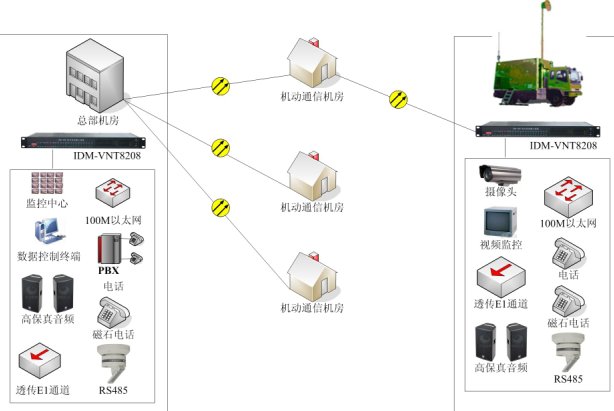 IDM-VNT8208野戰數字視頻光端機我公司采用國際先進的集成電路、可編程邏輯電路和高速微處理器研制而成。通過各種業務接口卡,將話音、低速數據、圖像等信號匯集在標準的2M接口內,然后利用時分復用技術將2M信號、視頻信號、透傳E1信號以及線速100M以太網信號復用在1.25G的光傳輸通道中進行傳輸。即插即用的設計使得安裝簡便易行,無需進行現場調節,其光模塊和核心電路均采用標準元器件,穩定性高,所有的光、電接口均符合國際標準,適用于不同的工作環境。
